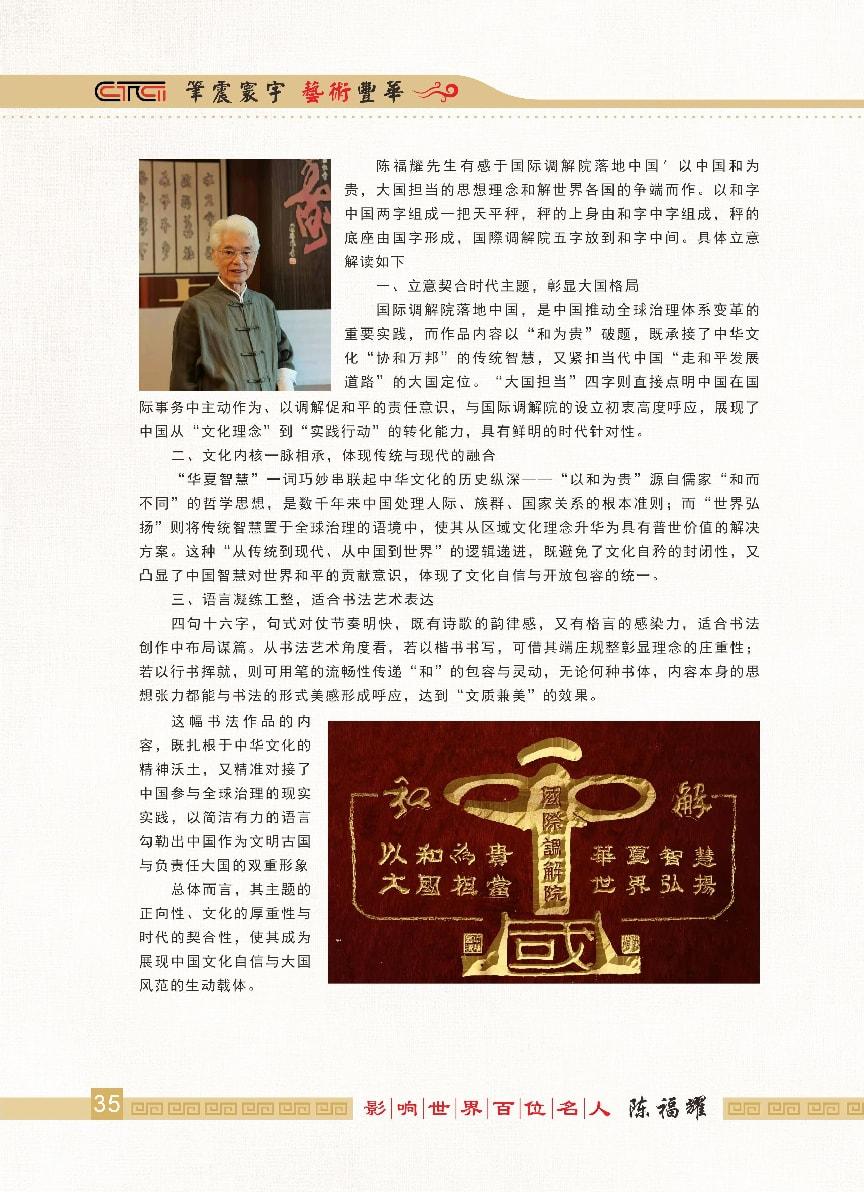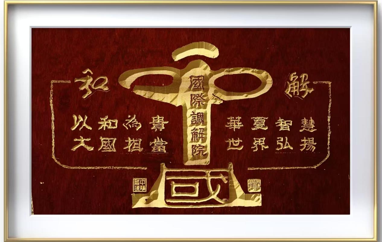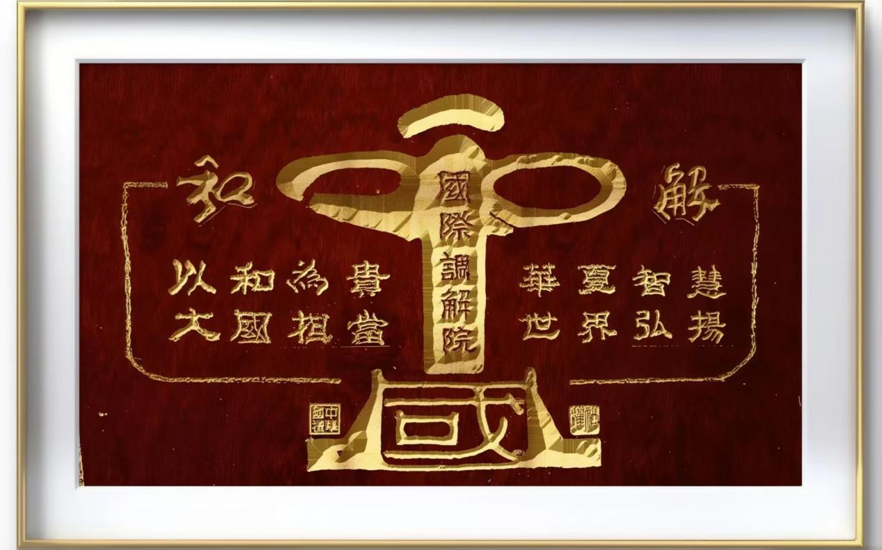 此作有感于国际调解院落地中国,用中国以和为贵,大国担当′和解世界各国的争端而撰写。以书法的形式带有装式性的设计表现调解院的初心和使命。