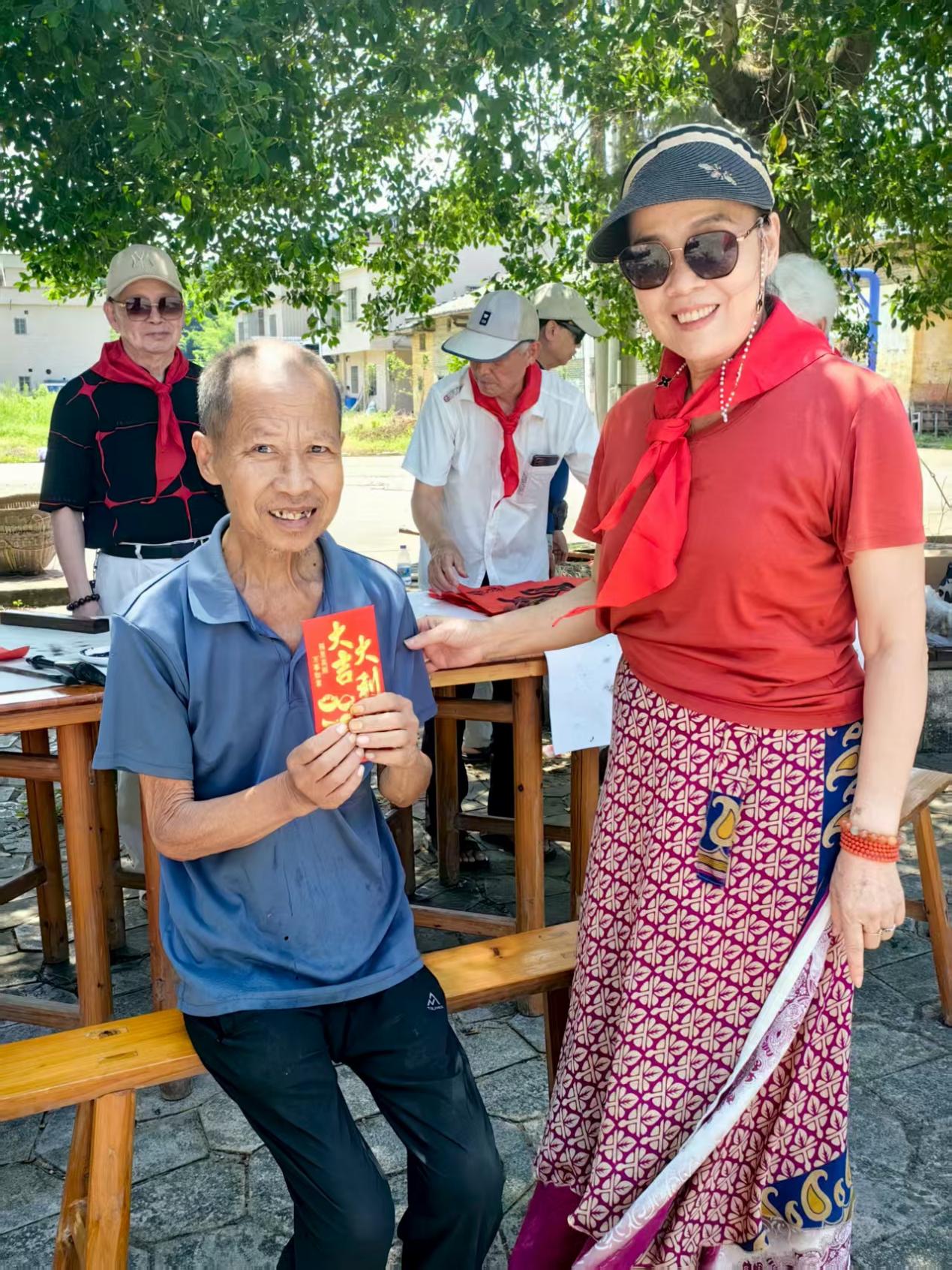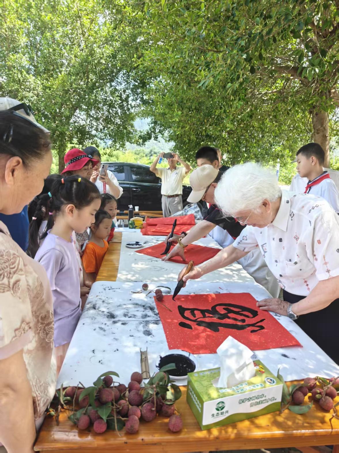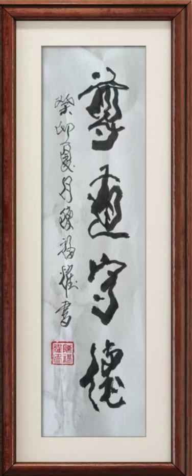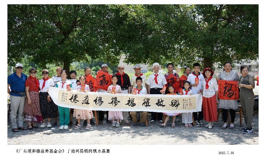 这横幅书法作品:德道传揚福耀故乡。源于2025年7月30日广东省道和德慈善基金会,以德道传揚始兴行为主题要到访我故乡始兴顿岗镇水晶寨村時而作的。