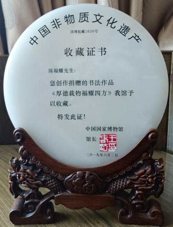2020年由国际名人百科力荐入展“文博会”。(中国(深圳)国际文化产业博览交易会,由中共中央宣传部(国家新闻出版署、国家电影局)、中华人民共和国文化和旅游部、中华人民共和国商务部、国家广播电视总局、中国国际贸易促进委员会、广东省人民政府和深圳市人民政府联合主办,深圳报业集团、深圳广播电影电视集团、深圳出版发行集团公司、深圳国际文化产业博览会有限公司承办的唯一国家级文化产业博览交易盛会)。2021年由国际名人百科举荐,中国访谈网权威发布,《2021年中国当代高层次书画艺术人才-—范迪安陈福耀》。